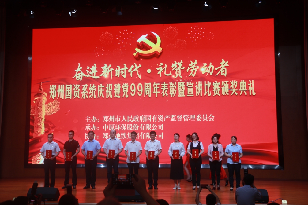 為慶祝中國共產黨成立99周年,重溫黨的光輝歷程,傳承黨的優(yōu)良傳統(tǒng),6月30日下午,鄭州市國資委舉行“奮進新時代·禮贊勞動者”——鄭州國資系統(tǒng)慶祝建黨99周年表彰暨宣講比賽頒獎典禮,集團黨委書記、董事長萬永生,監(jiān)事會主席李靜波,以及集團優(yōu)秀基層黨組織、優(yōu)秀共產黨員、優(yōu)秀基層代表、獲獎節(jié)目代表等共計20余人參加此次頒獎典禮。