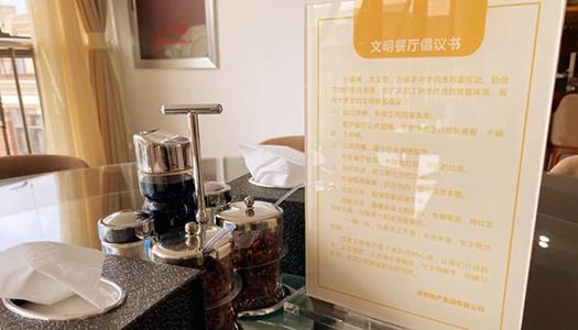 全集團(tuán)要積極傳承中華民族優(yōu)秀飲食文化和尊重勞動、珍惜糧食、勤儉節(jié)約的傳統(tǒng)美德,大力弘揚(yáng)勤儉節(jié)約、艱苦奮斗的崇高精神,積極倡導(dǎo)“文明就餐,杜絕浪費(fèi)”的用餐文化,營造“節(jié)約光榮、浪費(fèi)可恥”的良好氛圍。