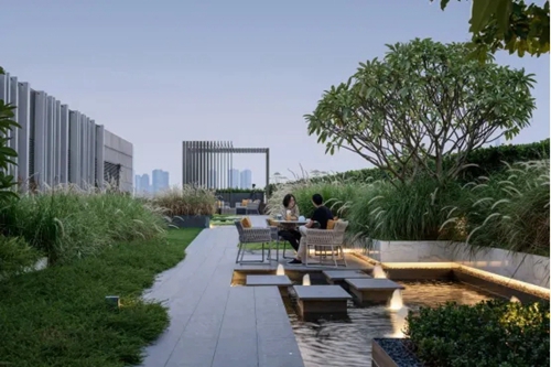 城發(fā)中心3樓露臺(tái)打造空中花園,融社交休憩空間、開(kāi)放式休息區(qū)域、綠色商務(wù)空間于一體,為企業(yè)打造公共功能空間的附加值。