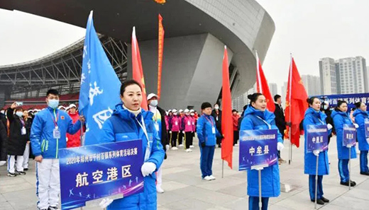 12月8日上午9時,2020年鄭州市“千村百鎮(zhèn)”系列體育活動決賽在鄭州奧體中心舉行。鄭州市體育局副局長蔣濤、鄭州市農(nóng)村與農(nóng)業(yè)委員會調(diào)研員王選順、河南鄭地奧體中心管理有限公司總經(jīng)理王新華、鄭州市體育局群體處處長楊書友、部分縣區(qū)(市)代表隊負責人以及全市各縣區(qū)(市)的運動員代表一千余人參加活動啟動儀式。