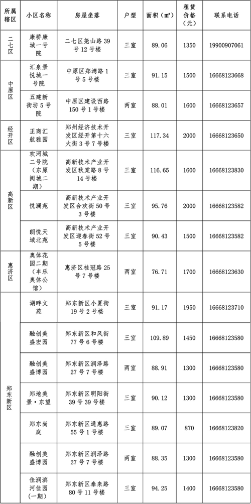 本批次配租房源共計(jì)15套(41間),其中為二七區(qū)1套(3間)、中原區(qū)2套(5間)、經(jīng)開(kāi)區(qū)1套(3間)、高新區(qū)3套(9間)、惠濟(jì)區(qū)1套(2間)、鄭東新區(qū)7套(19間)。水電費(fèi)均為民用水電標(biāo)準(zhǔn),房源精裝修交付,周邊配套設(shè)施齊全,配備家具家電,拎包入住,后續(xù)房源將根據(jù)裝修進(jìn)度情況陸續(xù)配租,具體以系統(tǒng)實(shí)際上線為準(zhǔn)。