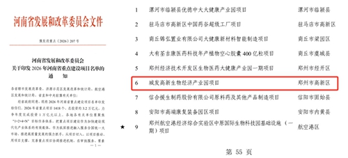 4月2日,河南省發(fā)展改革委發(fā)布通知,經(jīng)省政府同意,2026年河南省重點(diǎn)建設(shè)項目名單正式公布。名單明確,今年全省重點(diǎn)項目共1418個,總投資約3.2萬億元,力爭年度完成投資1萬億元以上。其中,城發(fā)·高新生物經(jīng)濟(jì)產(chǎn)業(yè)園成功入選,這是該項目繼2025年首次躋身省級重點(diǎn)建設(shè)項目行列后,再次被列入該序列,彰顯其在全省生物經(jīng)濟(jì)發(fā)展布局中的重要地位。