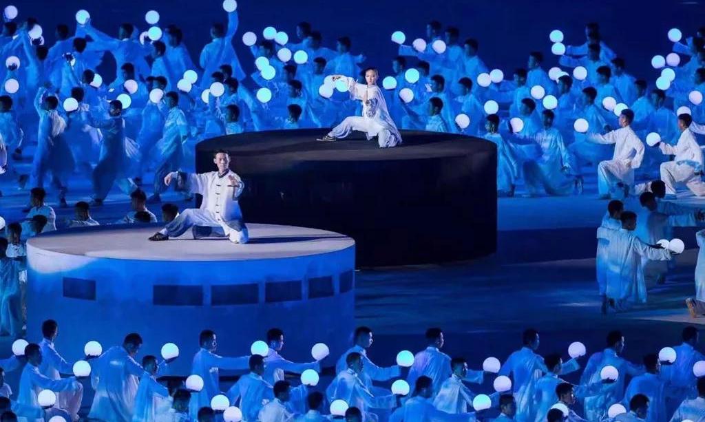 5塊總面積,超過3000平米的輕型透明網(wǎng)幕,130余臺(tái)高清投影機(jī)覆蓋上萬平米場地,通過威亞的技術(shù)手段和地面投影相呼應(yīng)。地面、空中、立面多維度的表演空間,將各種特色民族元素呈現(xiàn)出來,呈現(xiàn)了各族人民的幸福生活,書寫出一張張民族文化名片。當(dāng)現(xiàn)場各族人民跳起歡快的舞蹈,當(dāng)各民族美麗的服飾在現(xiàn)場轉(zhuǎn)出最絢麗的弧度,展現(xiàn)出各民族團(tuán)結(jié)奮進(jìn)、朝氣蓬勃的精神風(fēng)貌。作為河南特色的少林和太極兩個(gè)重要元素也在本次開幕式精彩亮相,由塔溝武校數(shù)千名演員演繹。隨著音樂節(jié)奏的轉(zhuǎn)換,他們變幻各種造型,動(dòng)靜結(jié)合、氣勢恢宏,讓觀眾更加了解精彩河南。