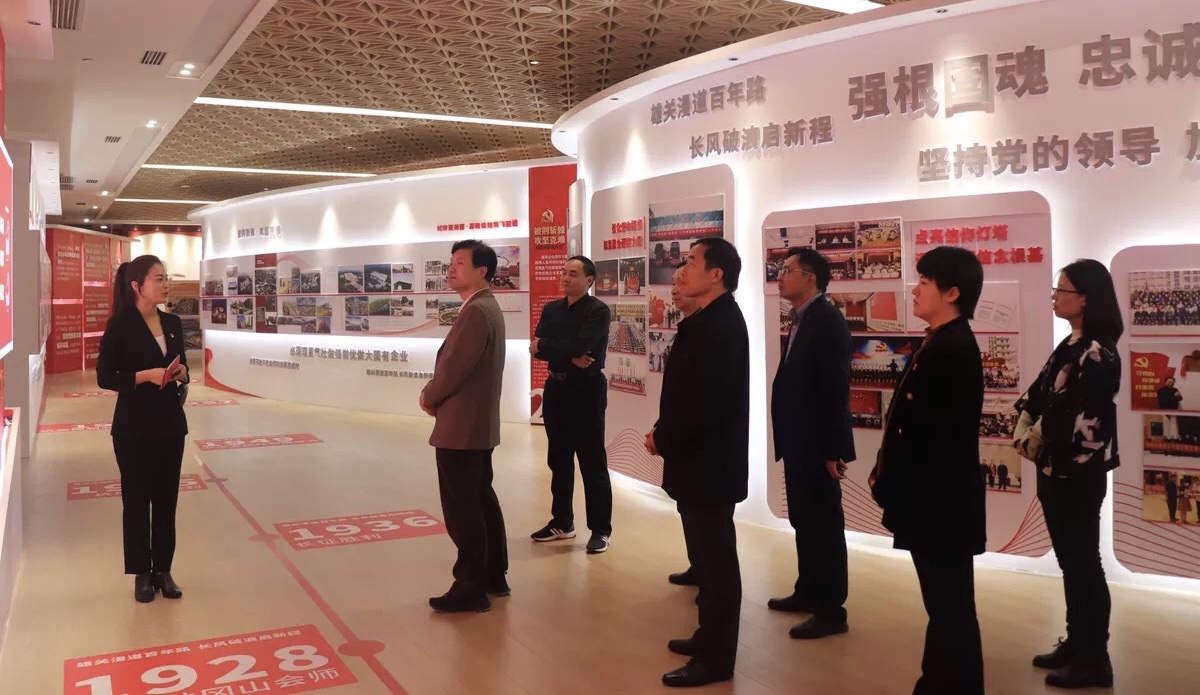 第二站,調(diào)研組一行來到了集團(tuán)都市開發(fā)黨支部主辦的“紅色印記展”。都市開發(fā)黨支部書記、董事長索虎現(xiàn)場匯報了支部黨史學(xué)習(xí)教育開展的亮點,并著重介紹了此次“紅色印記展”的基本情況。參觀后,市委黨史辦、市國資委黨史辦領(lǐng)導(dǎo)對“紅色印記展”給予高度認(rèn)可,對都市開發(fā)黨支部黨史學(xué)習(xí)教育所取得的階段性成效給予了充分肯定,并希望黨支部繼續(xù)創(chuàng)新黨史學(xué)習(xí)教育形式,不斷打造黨史學(xué)習(xí)教育新亮點。